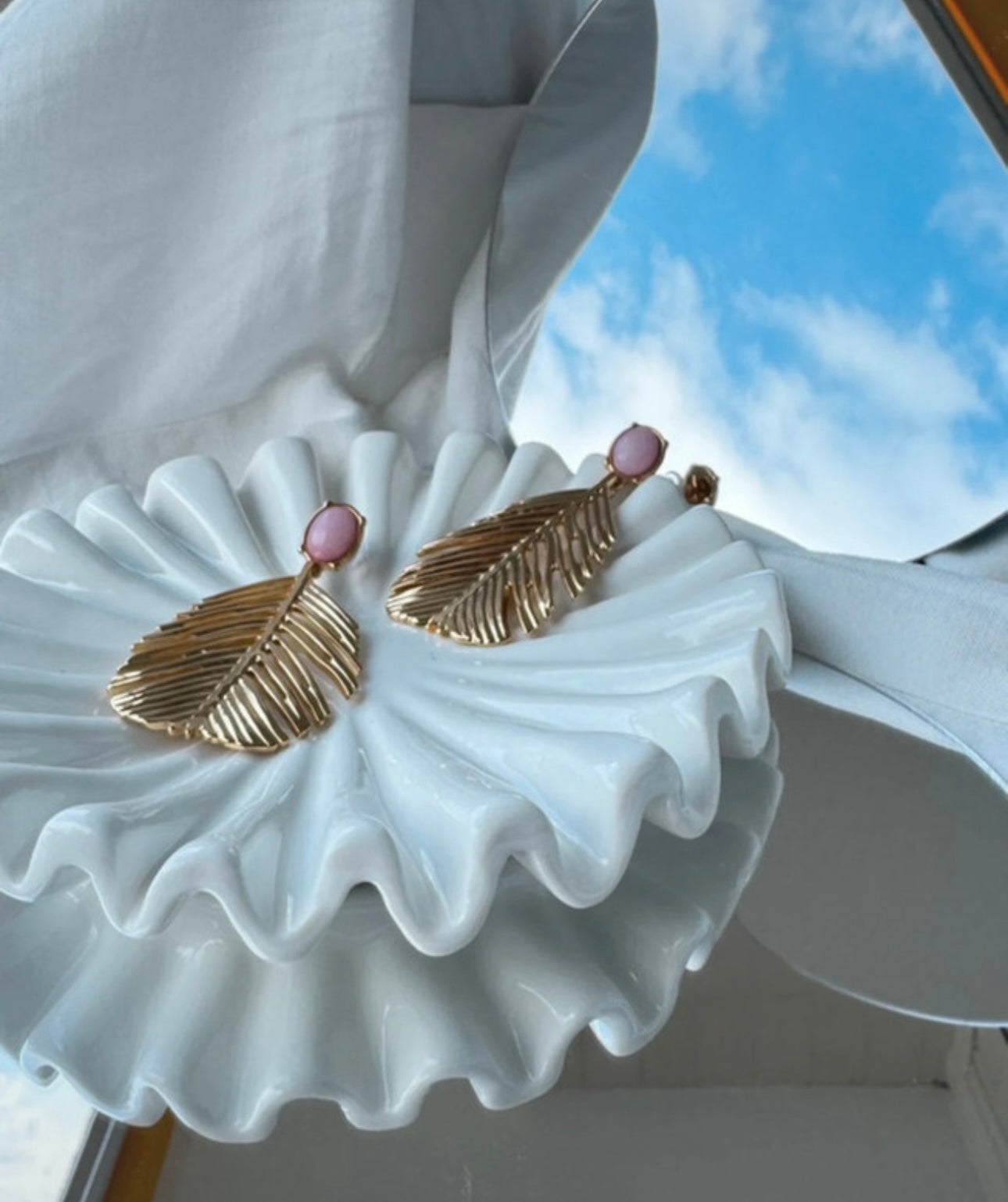 El diseño en forma de pluma sugiere movimiento y ligereza, recordando a la famosa ave de fuego que cobra vida en el escenario. Cada detalle ha sido meticulosamente trabajado para reflejar la fluidez y la energía del ballet, haciendo que estos pendientes sean el complemento perfecto para quienes aprecian la conexión entre la música, la danza y la moda.