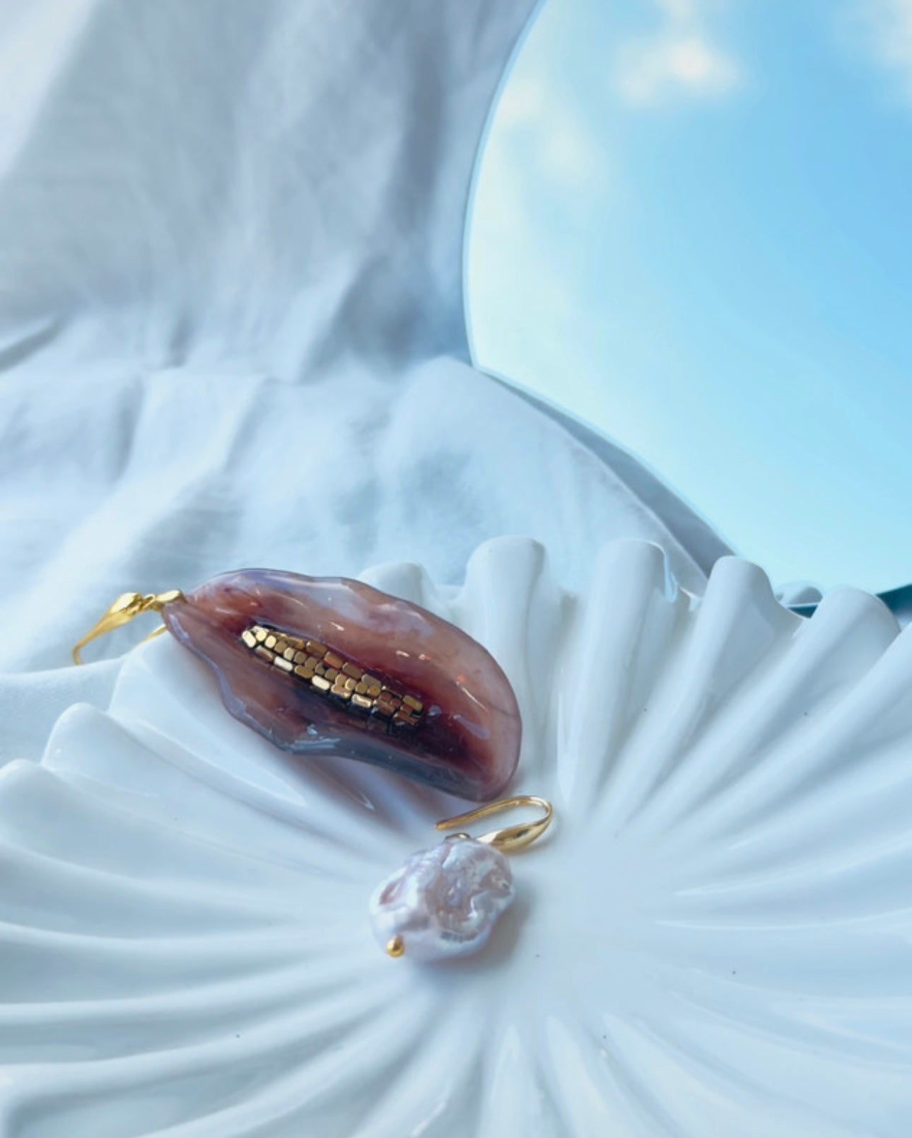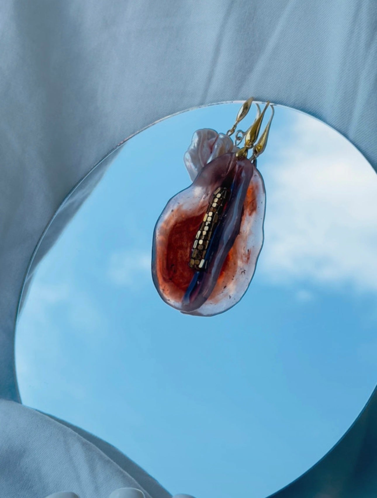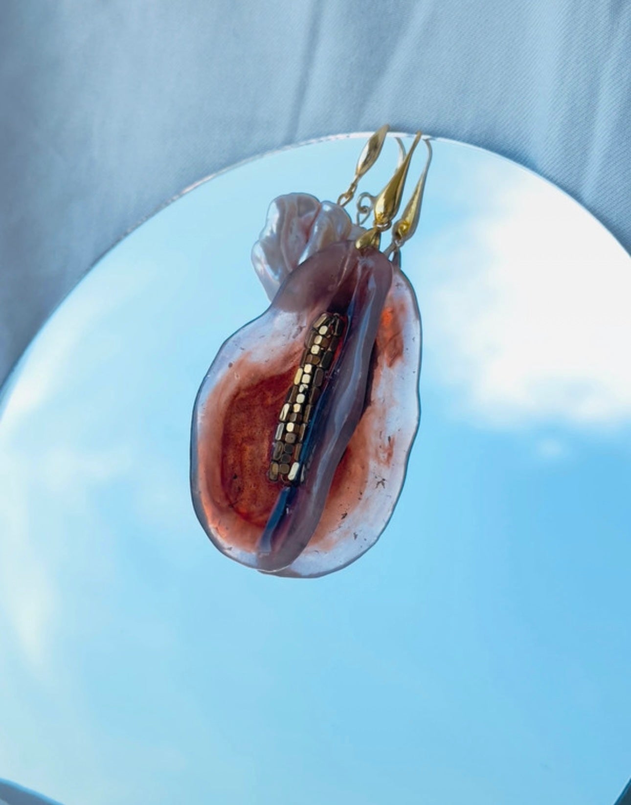 Pendientes de Acero, Resina y Perla en Forma de Vagina