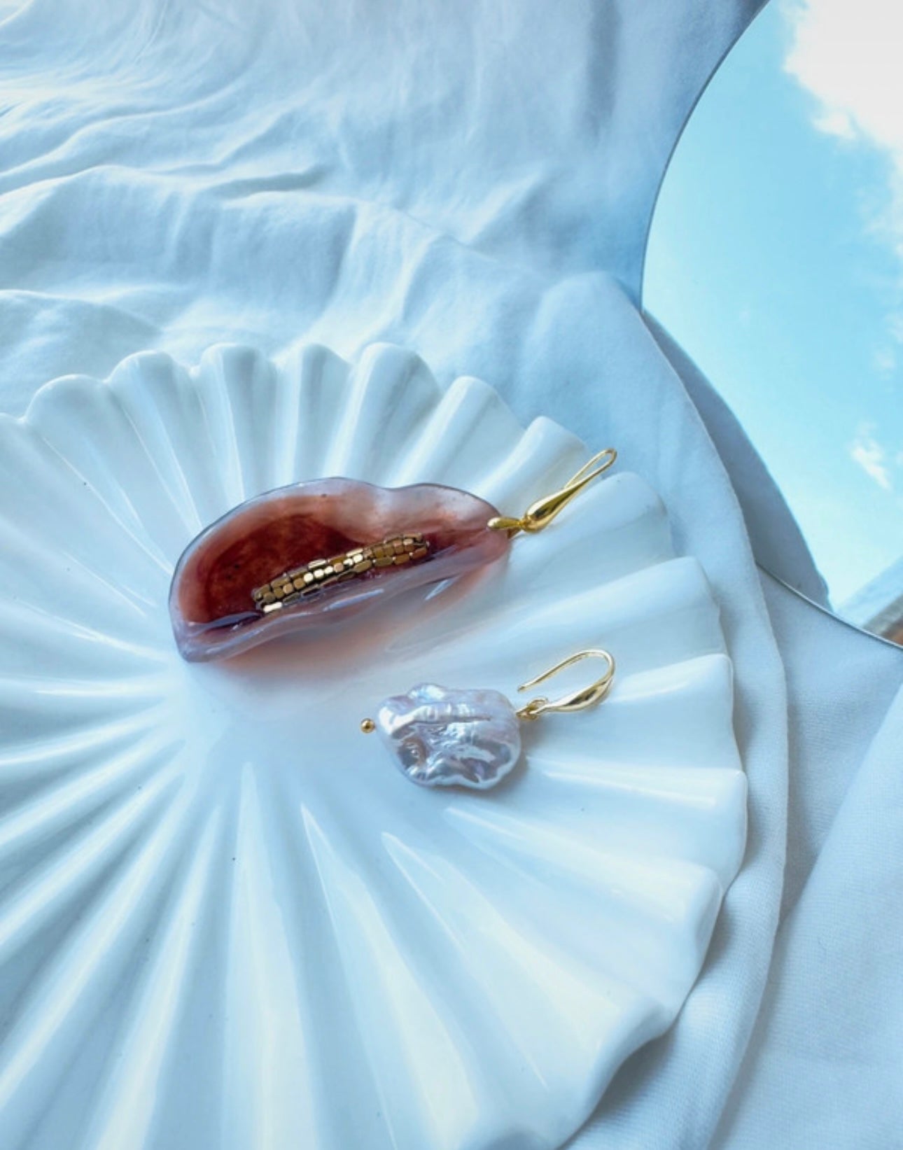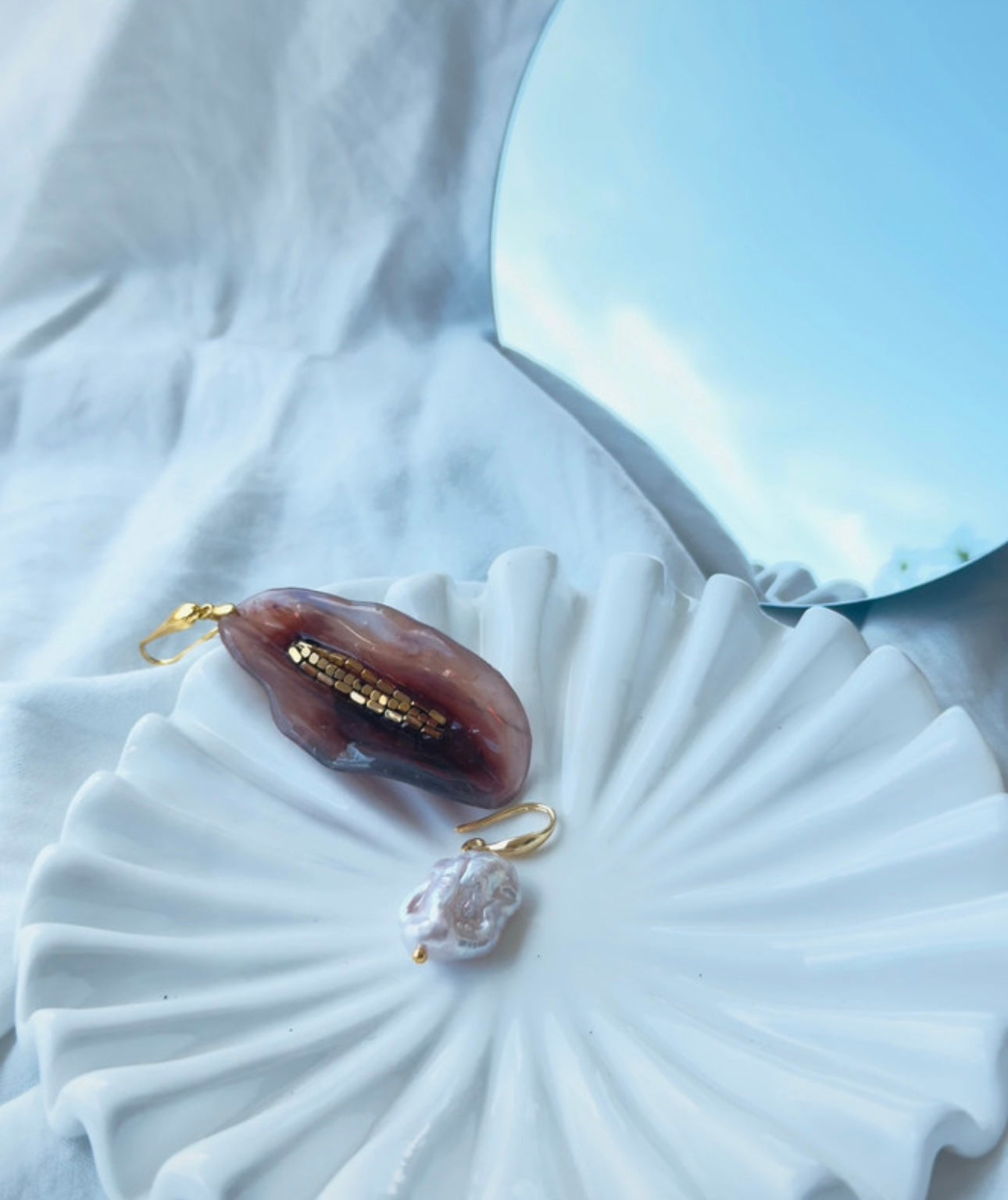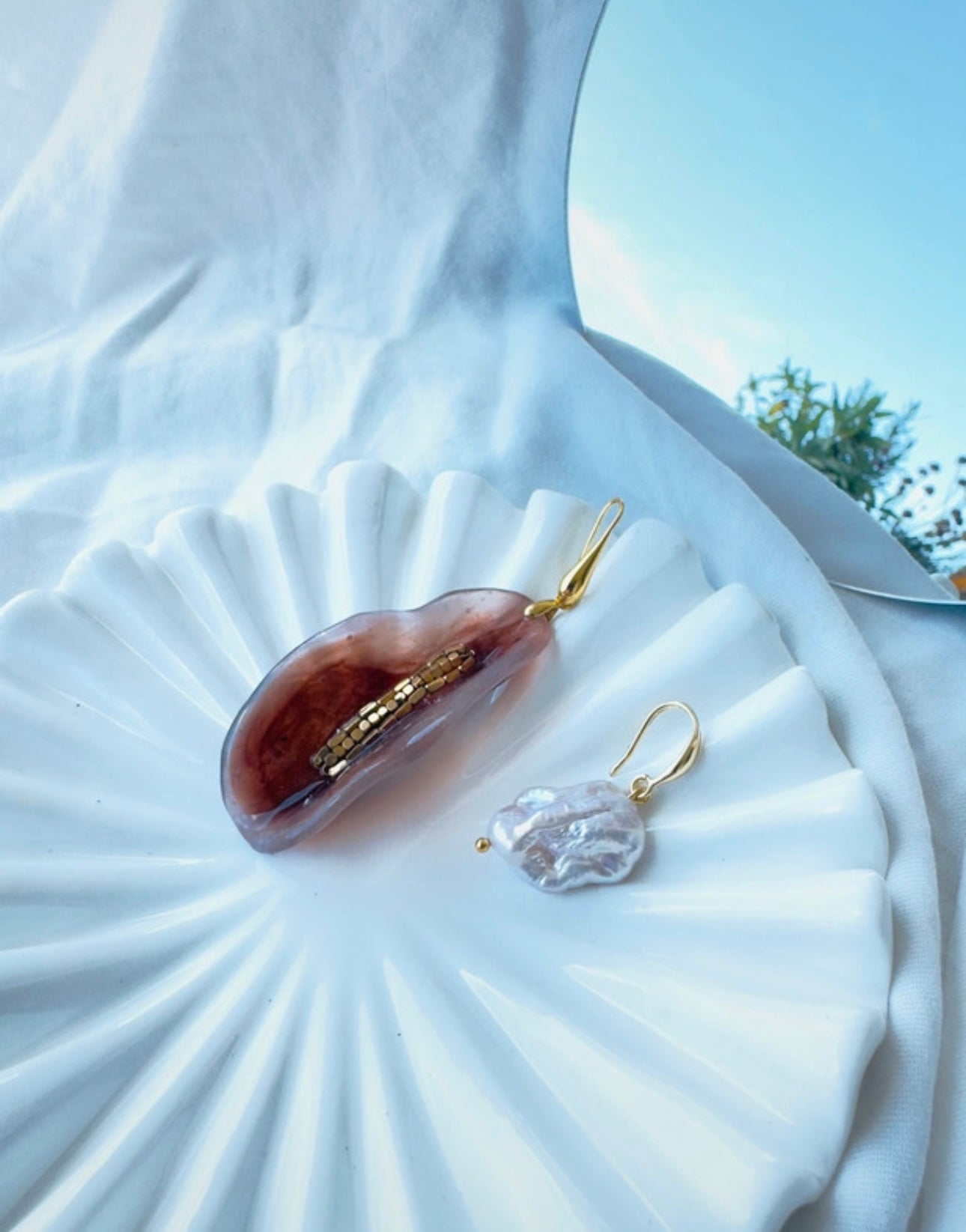 Pendientes de Acero, Resina y Perla en Forma de Vagina