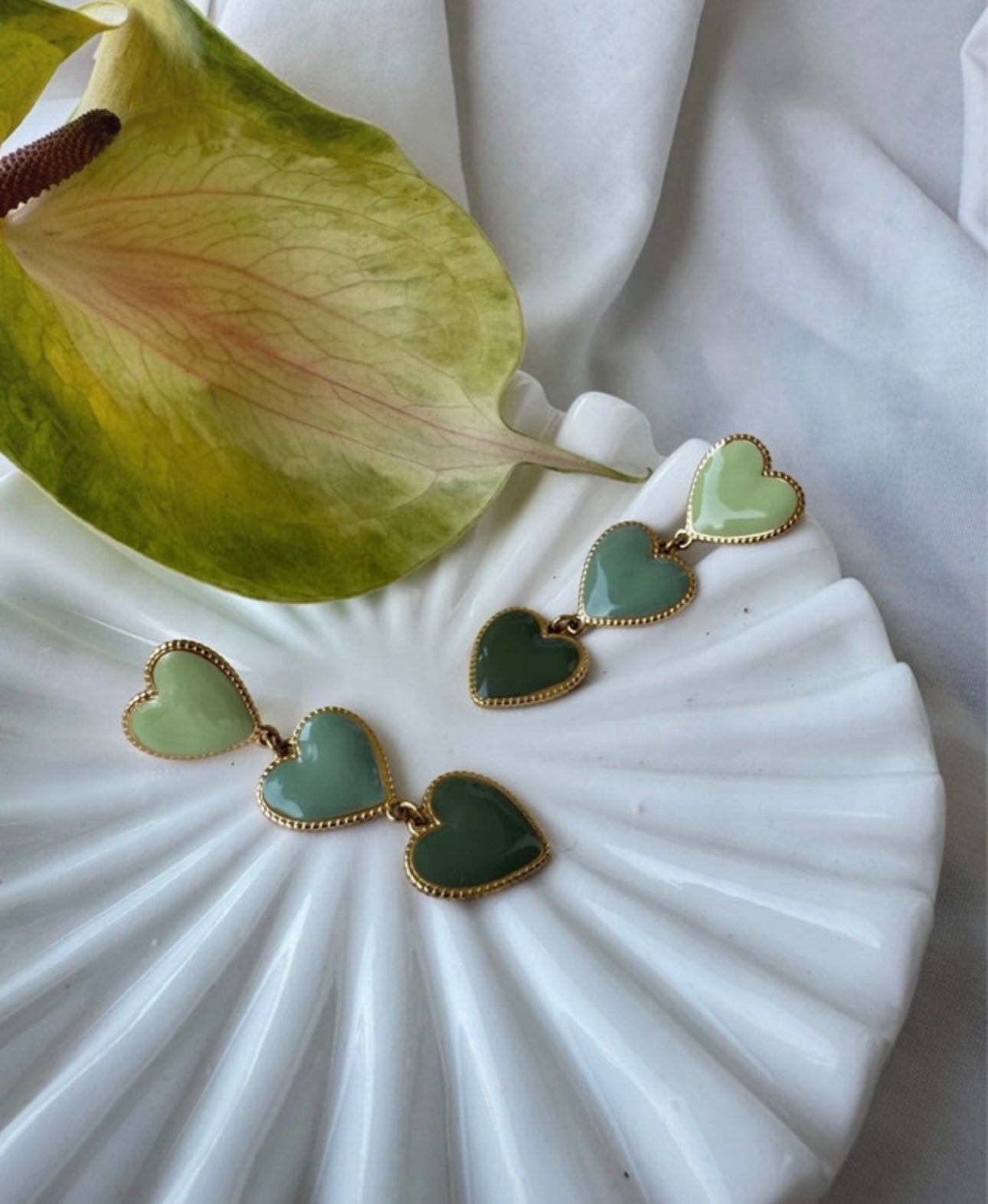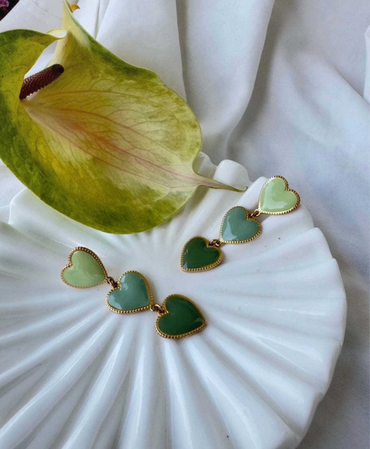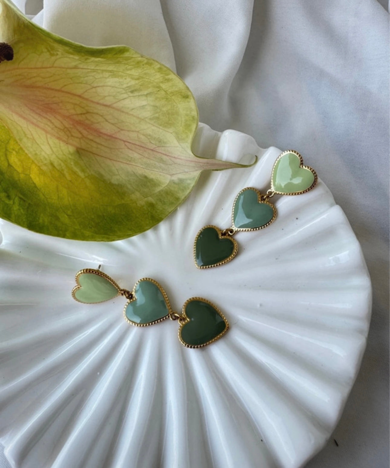 La magia de los pendientes Renée reside en su exquisito esmalte, que despliega una paleta de colores fascinantes: el fresco menta, el vibrante pistacho y el suave té verde matcha se entrelazan en un diseño armonioso. Cada tono evoca la calma de un jardín en primavera y la frescura de un té recién preparado, brindando un aire de tranquilidad y renovación a quien los lleva.