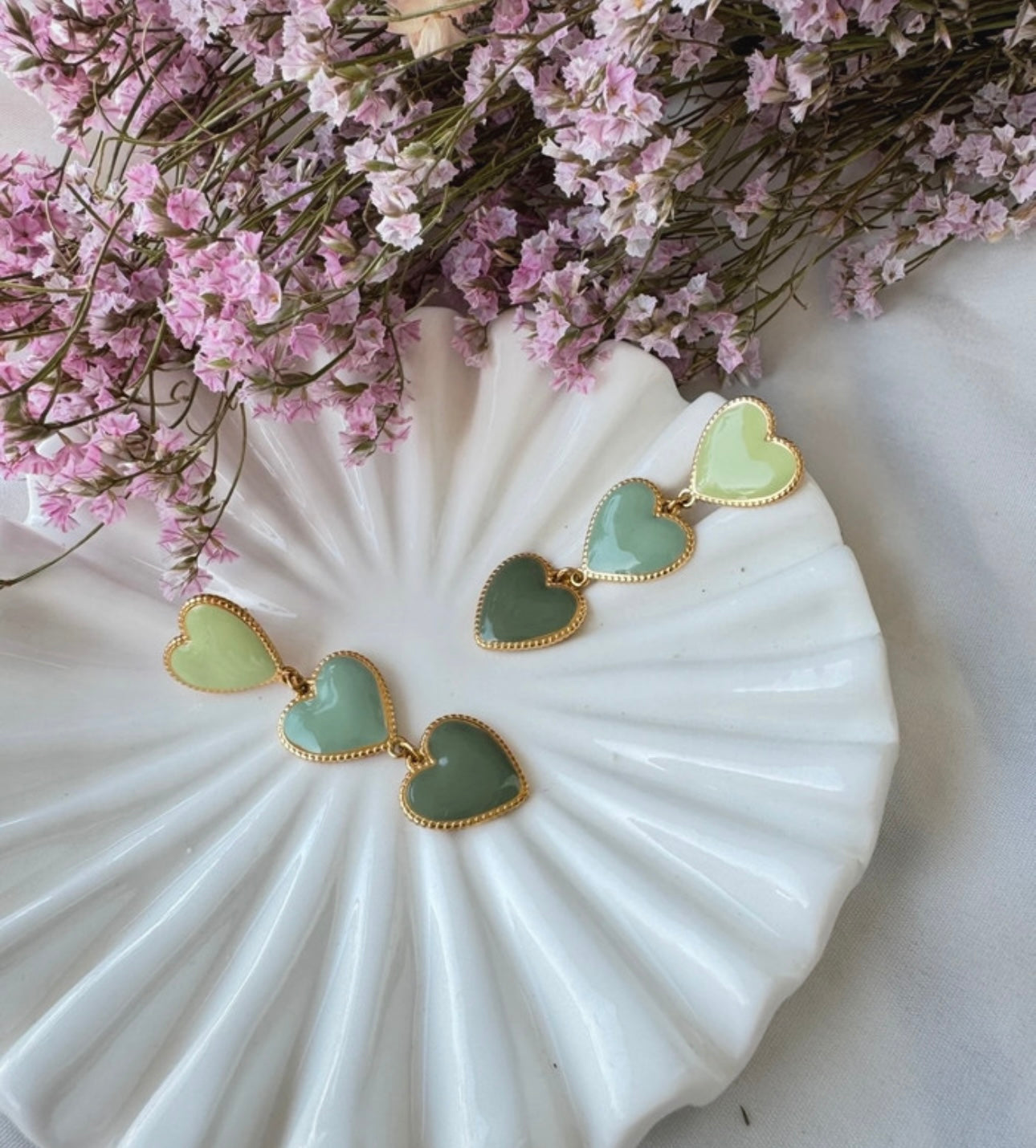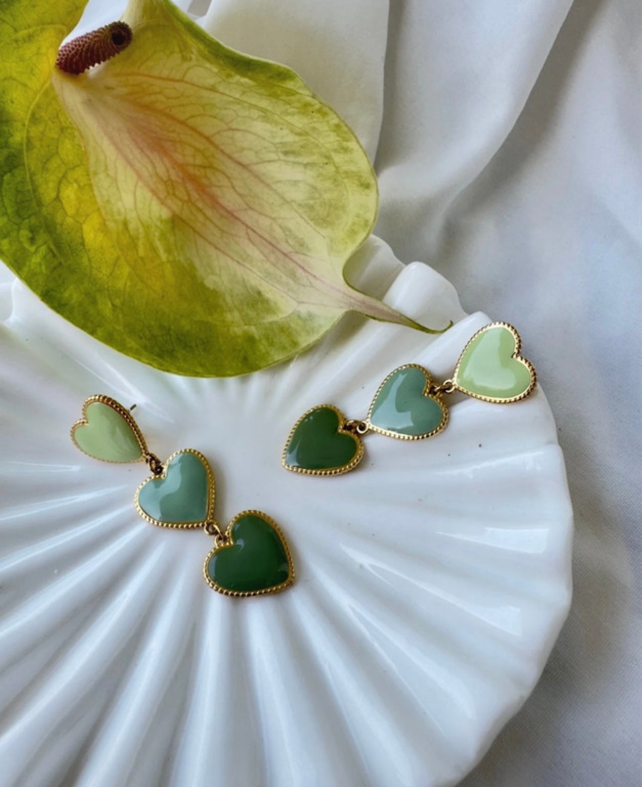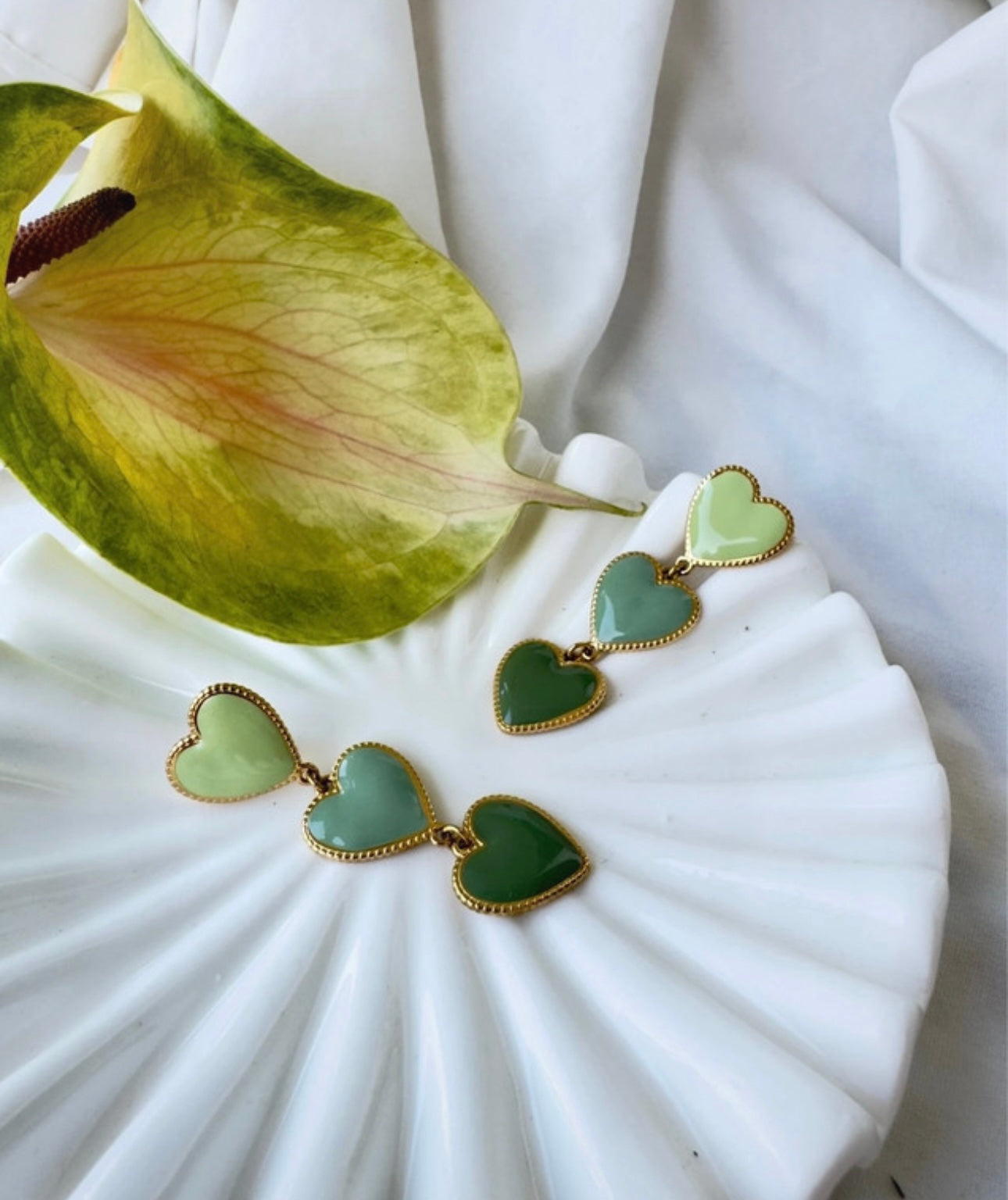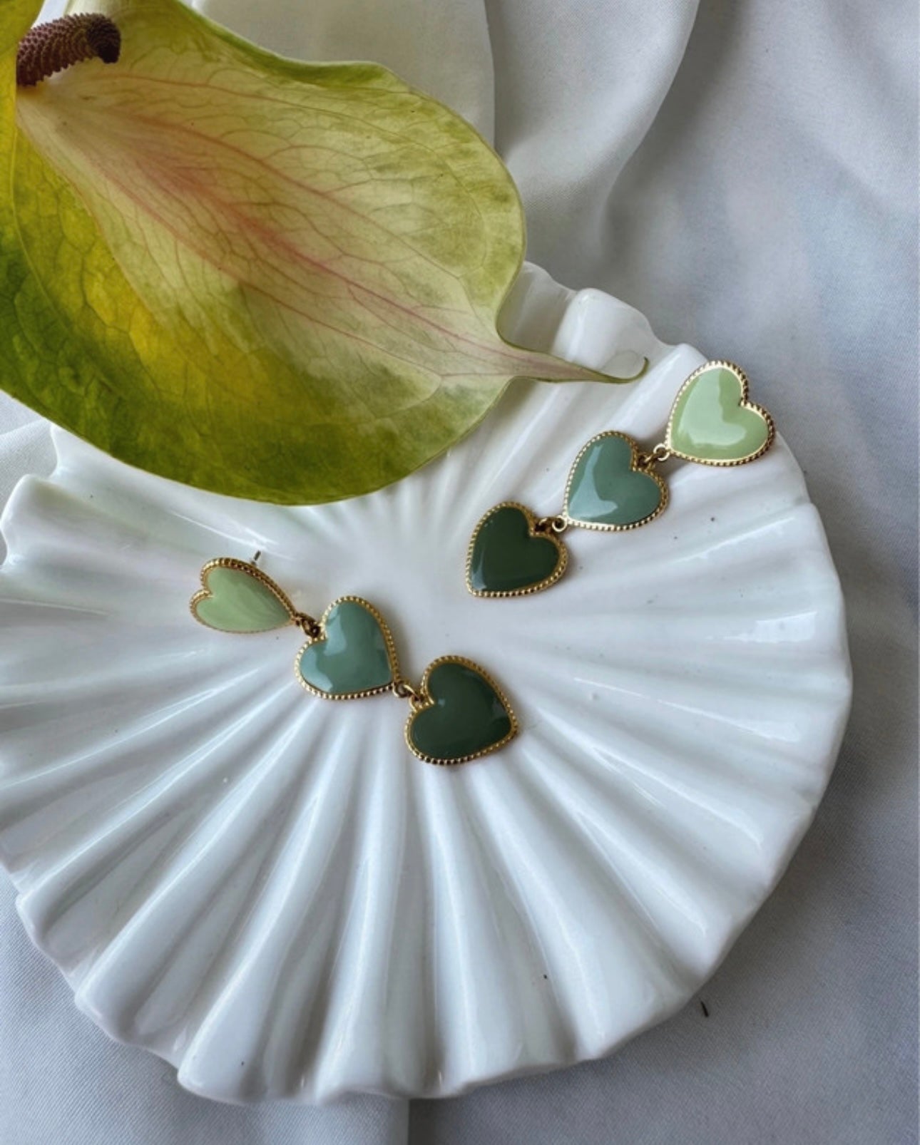 La magia de los pendientes Renée reside en su exquisito esmalte, que despliega una paleta de colores fascinantes: el fresco menta, el vibrante pistacho y el suave té verde matcha se entrelazan en un diseño armonioso. Cada tono evoca la calma de un jardín en primavera y la frescura de un té recién preparado, brindando un aire de tranquilidad y renovación a quien los lleva.